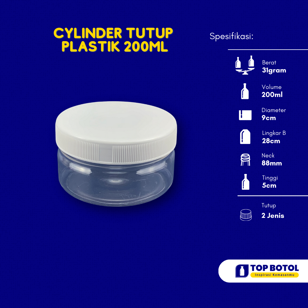 JAR CYLINDER 200ML TUTUP PLASTIK